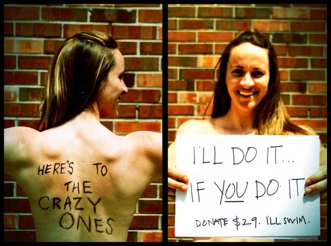 - Tweet this: It’s crazy and we love it: @sarahkpeck will swim her suit off for @charitywater if 1000 people donate $29